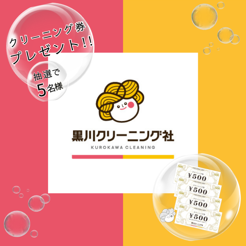 黒川クリーニング社から、5名様にクリーニング券2,000円分(500円×4枚)をプレゼント!応募多数の場合は抽選となります。